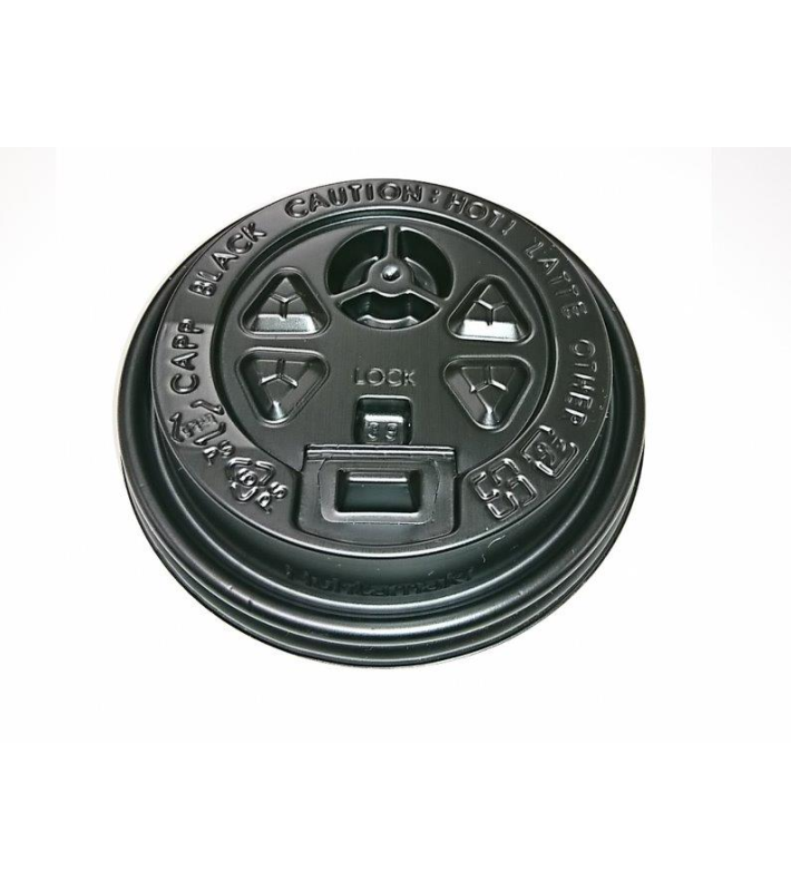 Καπάκι πλαστικό PS πιπίλα μαύρο TL-90 με ενσωματωμένο πώμα για ποτήρια με διάμετρο στομίου 90mm 100τεμάχια*10πακέτα