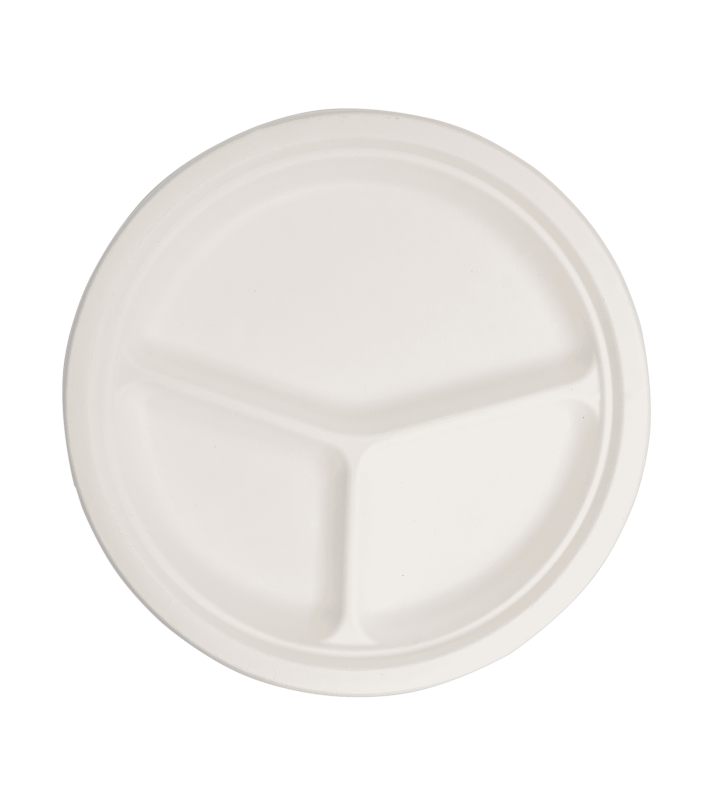 Πιάτο από ζαχαροκάλαμο στρογγυλό 26cm 3θέσιο λευκό S25 50τεμάχια*10πακέτα