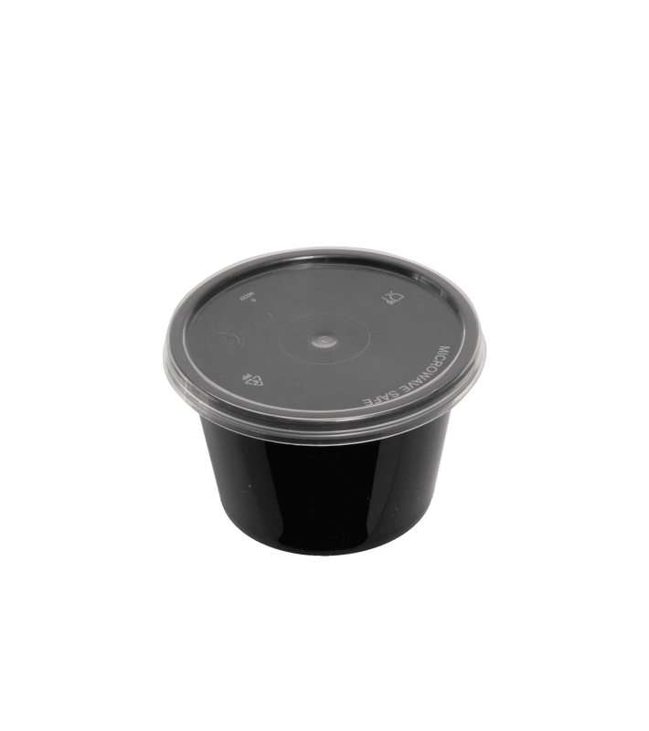 Container στρογγυλό PP μαύρο για φούρνους μικροκυμάτων με αποσπ. καπακι 4oz P66 με καπάκι 50τεμάχια*20πακέτα