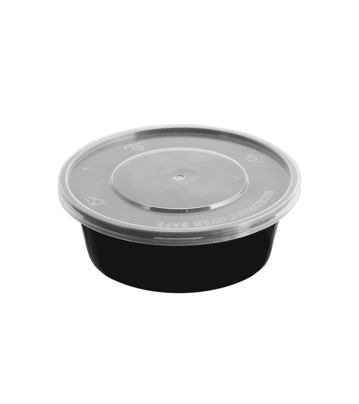Container στρογγυλό PP μαύρο για φούρνους μικροκυμάτων 300ml T23-T55 με καπάκι 50τεμάχια*9πακέτα
