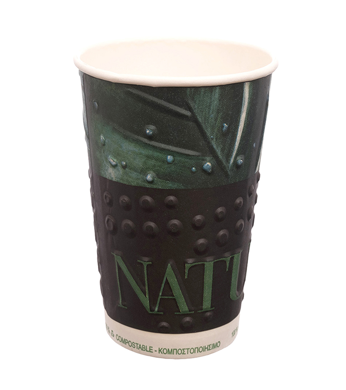 Ποτήρι χάρτινο διπλού τοιχώματος για ζεστά και κρύα ροφήματα “Nature Thanks You” DW-16 25τεμάχια*20πακέτα