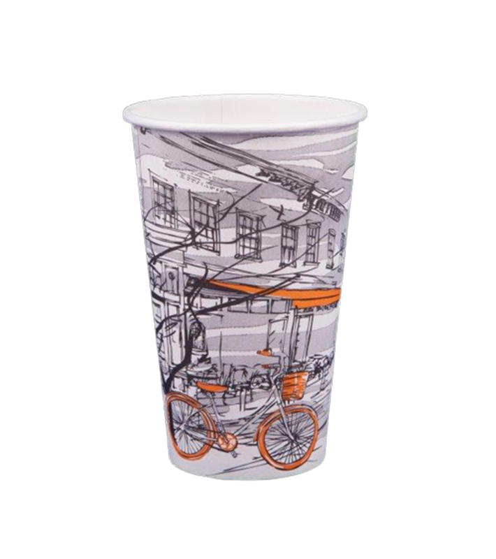 Ποτήρι χάρτινο μονού τοιχώματος για ζεστά ροφήματα “City Life” SP-16 50τεμάχια*20πακέτα