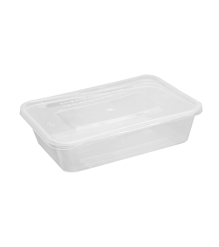 Container παραλληλόγραμμο PP διάφανο για φούρνους μικροκυμάτων 500ml T01 με καπάκι 50τεμάχια*6πακέτα
