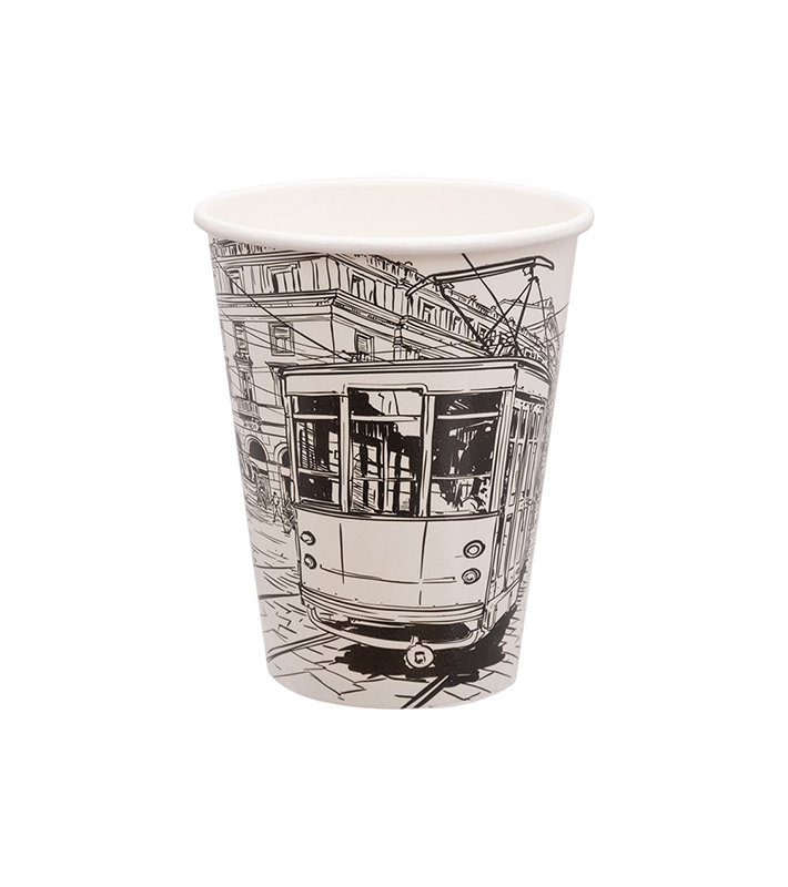 • Ποτήρι χάρτινο μονού τοιχώματος για ζεστά και κρύα ροφήματα “City Life” DPE-14 50τεμάχια*20πακέτα